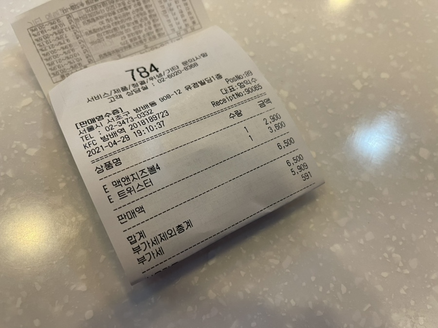 퇴근길에 저녁을 사 먹으러 kfc에 들렀습니다.