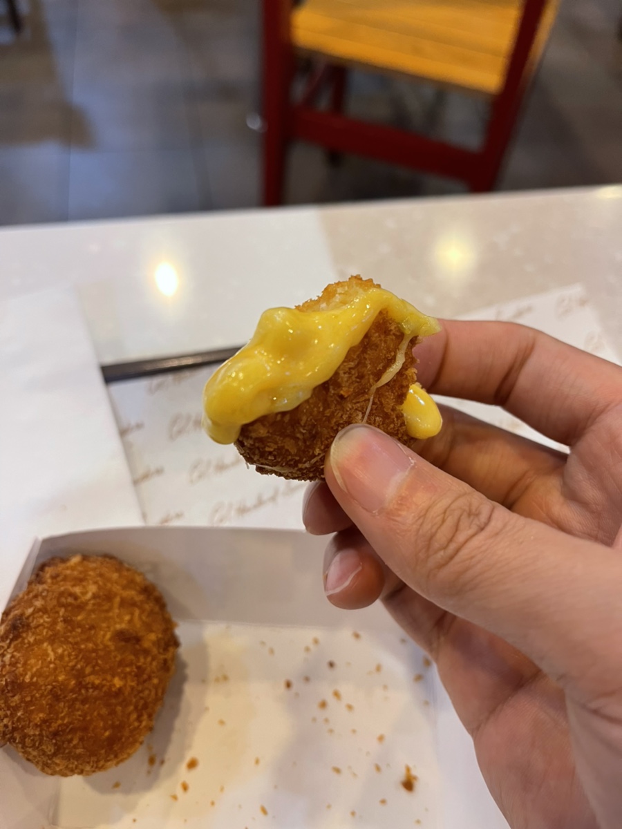kfc 맥 앤 치즈볼 한입 먹어보았습니다.