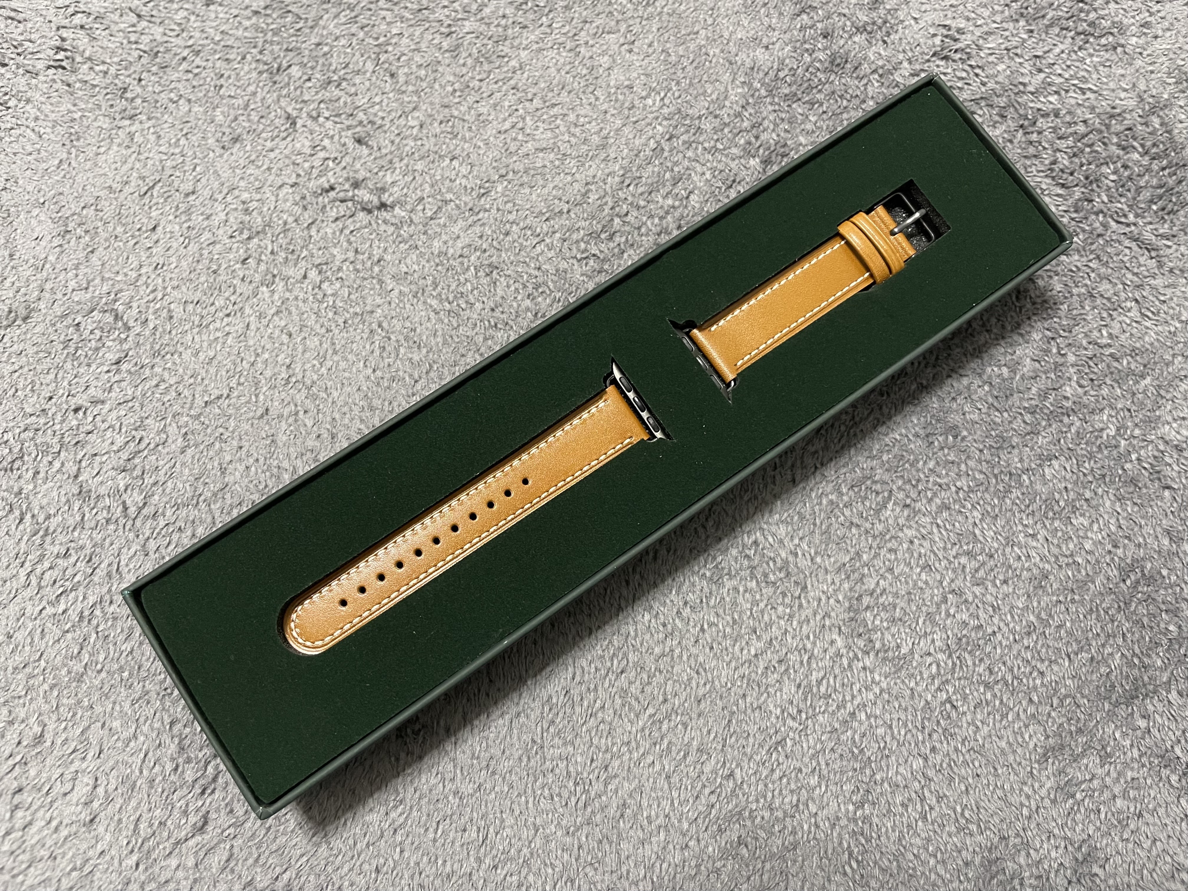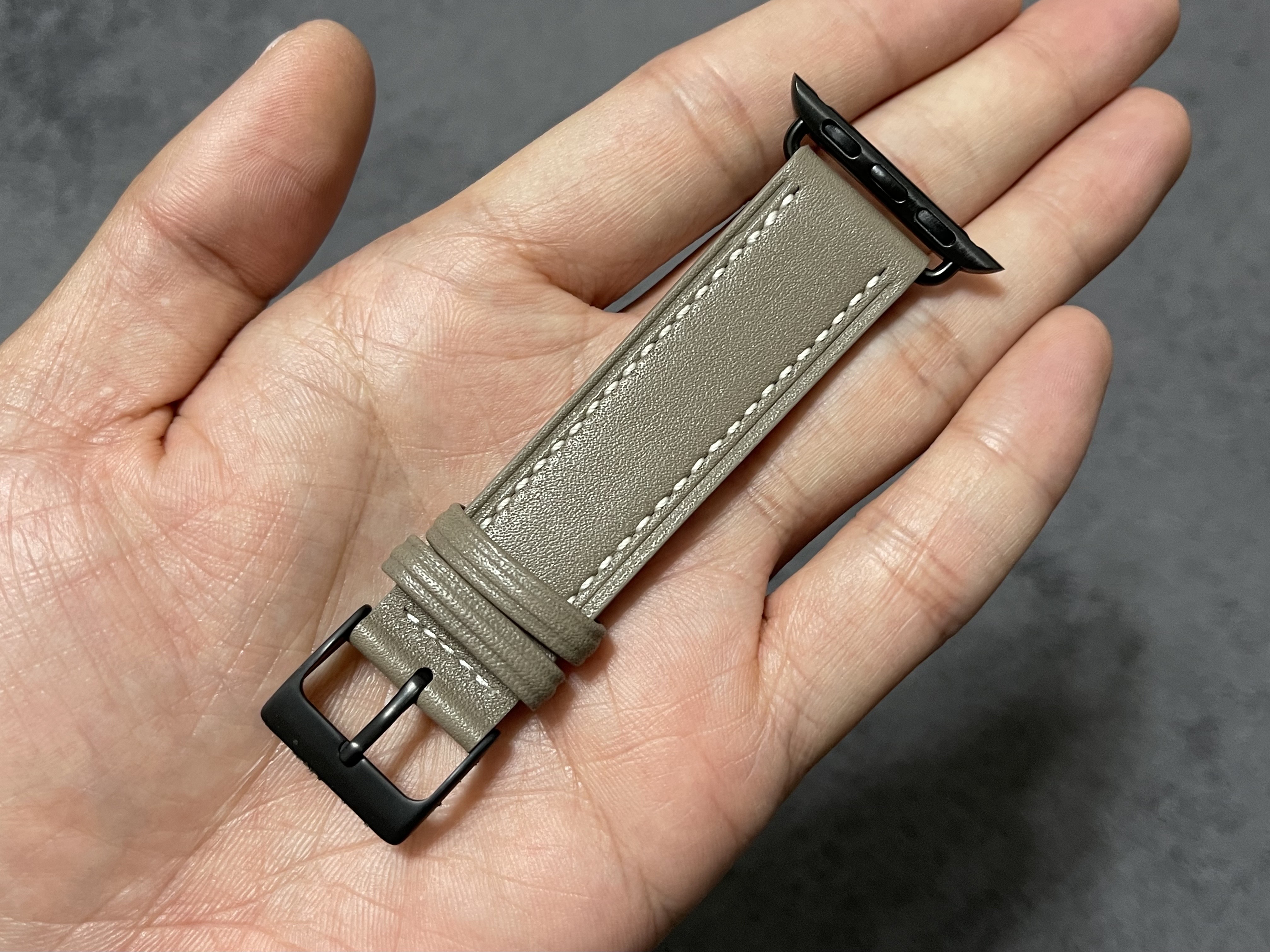 패키지에서 꺼내 본 로이드 애플워치 가죽스트랩 웜그레이 색상입니다.