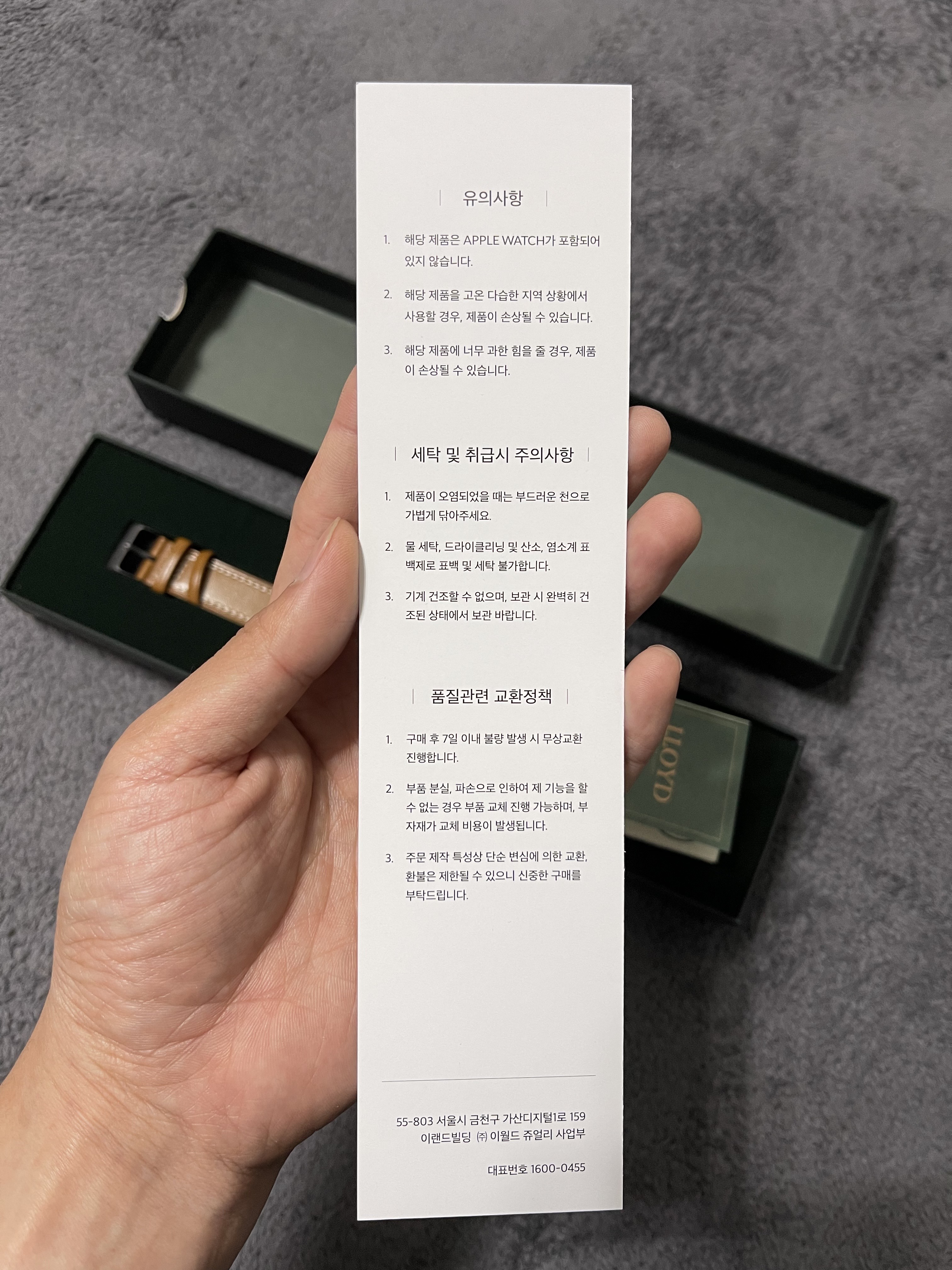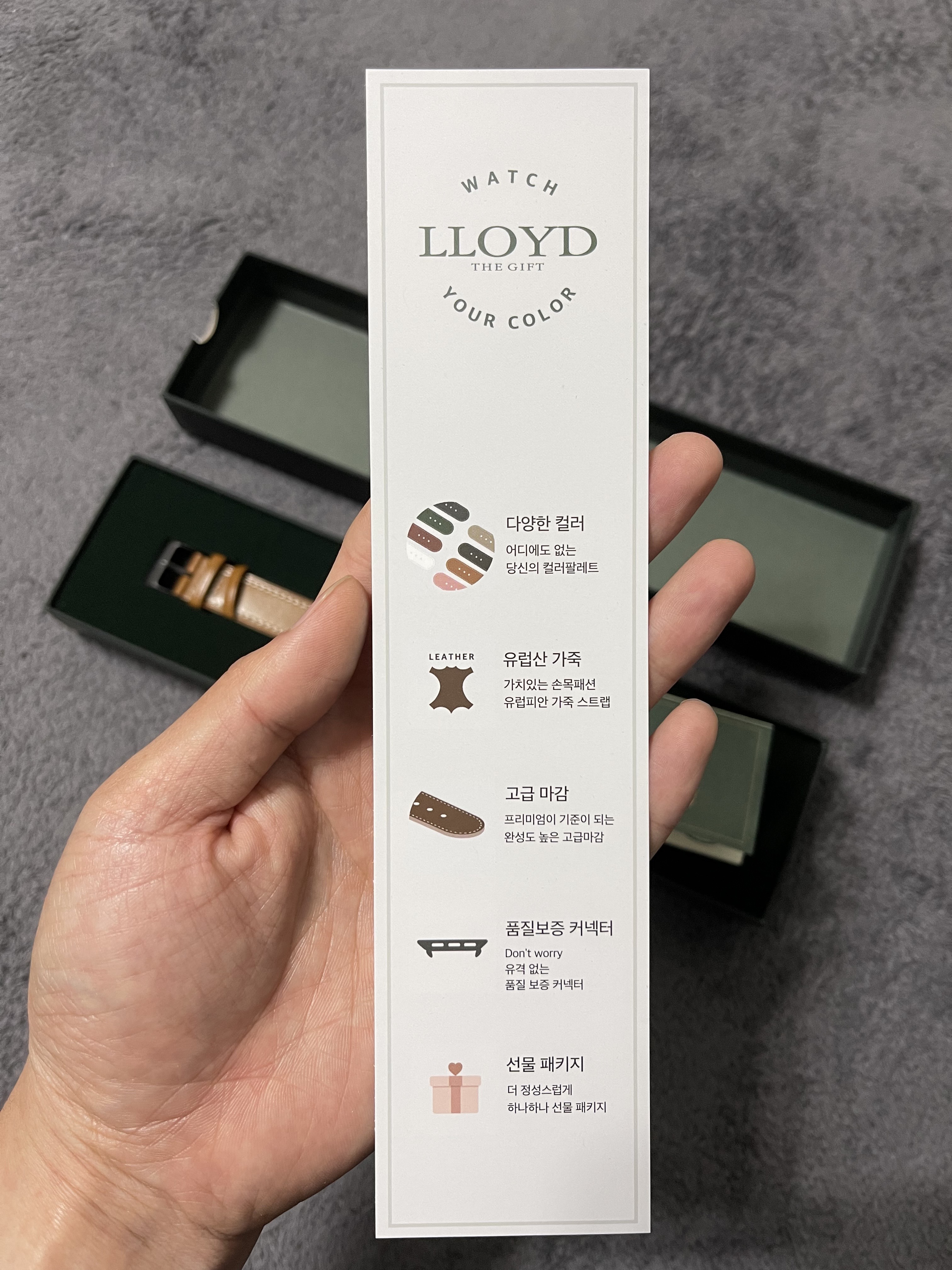 로이드 애플워치 스트랩의 보증서와 설명서가 들어있습니다.