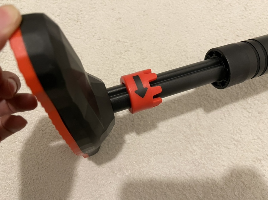 고정을 해주는 빨간 파츠를 뺀 후 양 옆의 바를 화살표 방향으로 돌리면 늘어납니다.