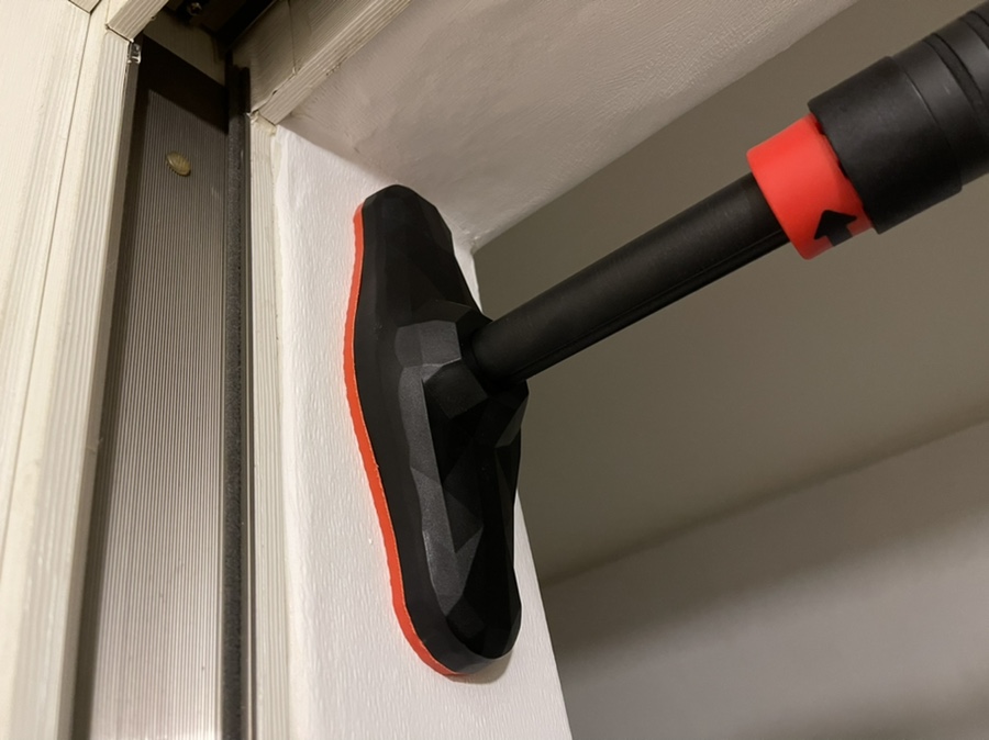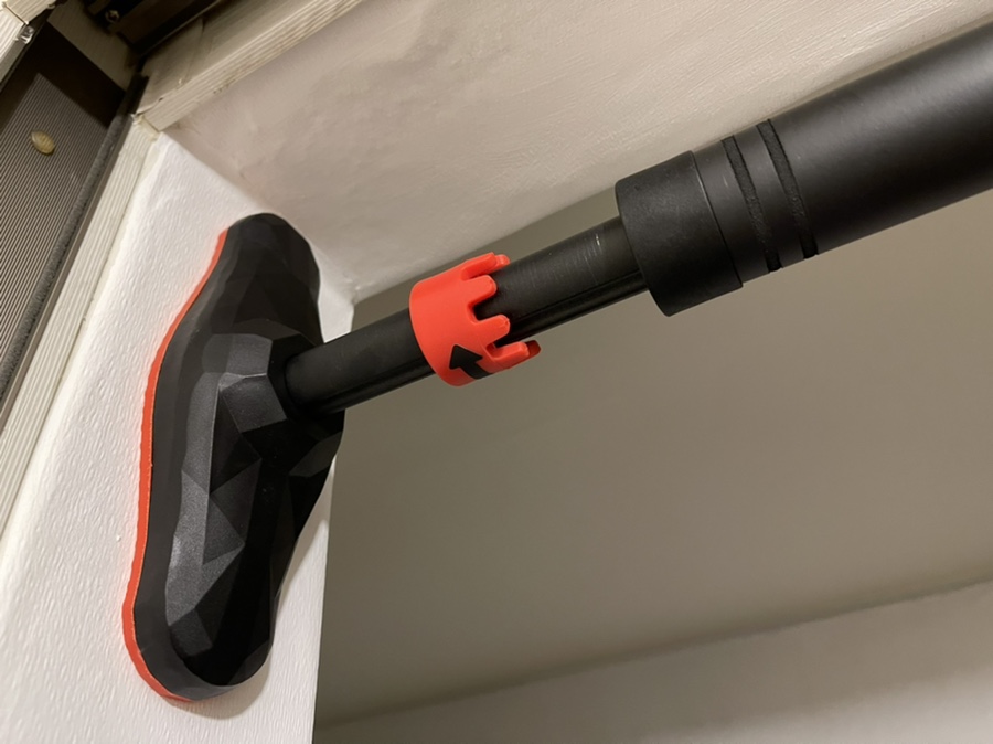 문틈 길이에 맞춘 후 가운데 봉을 돌려주면 추가로 연장이 되어 더 접지를 강하게 할 수 있습니다.