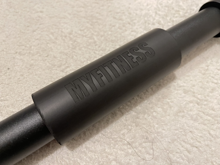 풀업바의 중앙 스펀지에는 마이피트니스 텍스트가 음각으로 새겨져 있습니다.