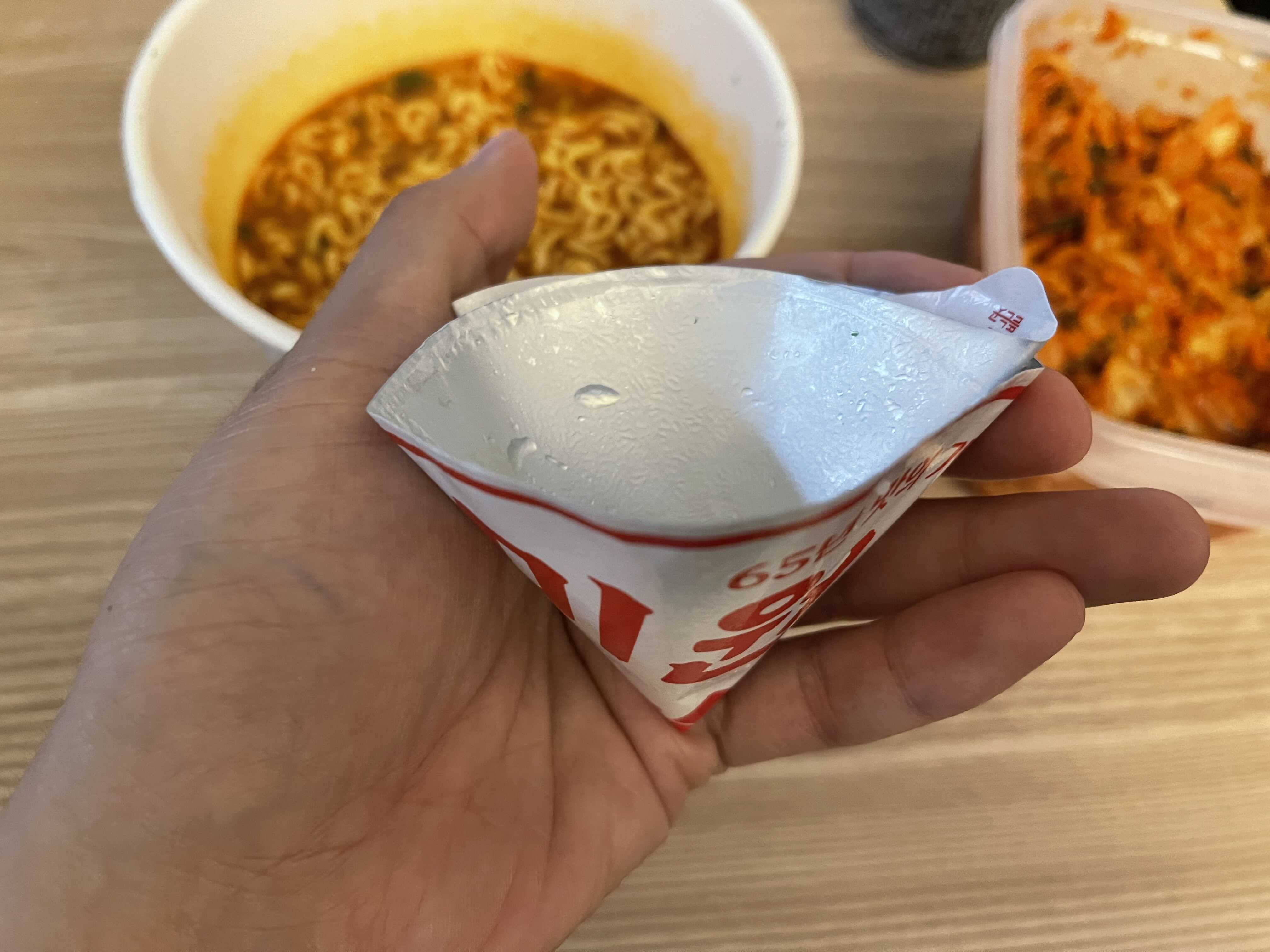 스프를 넣었습니다. 일반적인 라면이랑 큰 차이가 없어보입니다.