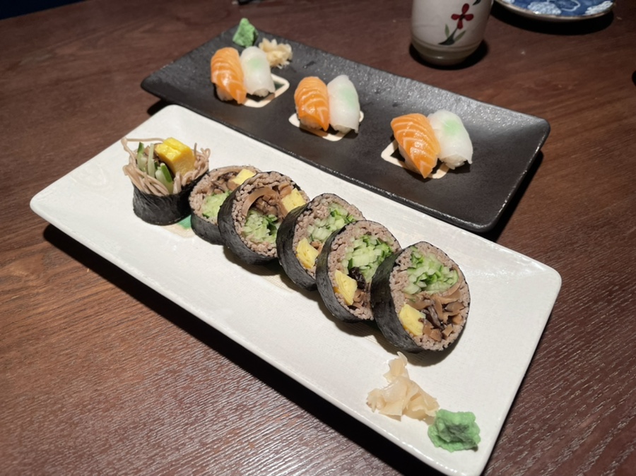 소바마끼는 처음 먹어보았는데 소바와 오이, 버섯이 잘 어울려서 맛있었습니다.