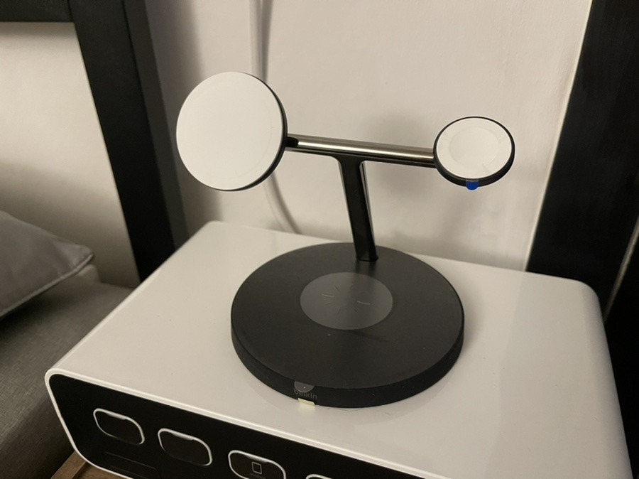 침대 옆 무선 충전기와 애플워치 충전기가 있던 자리에 벨킨 3in1충전기가 자리잡았습니다.