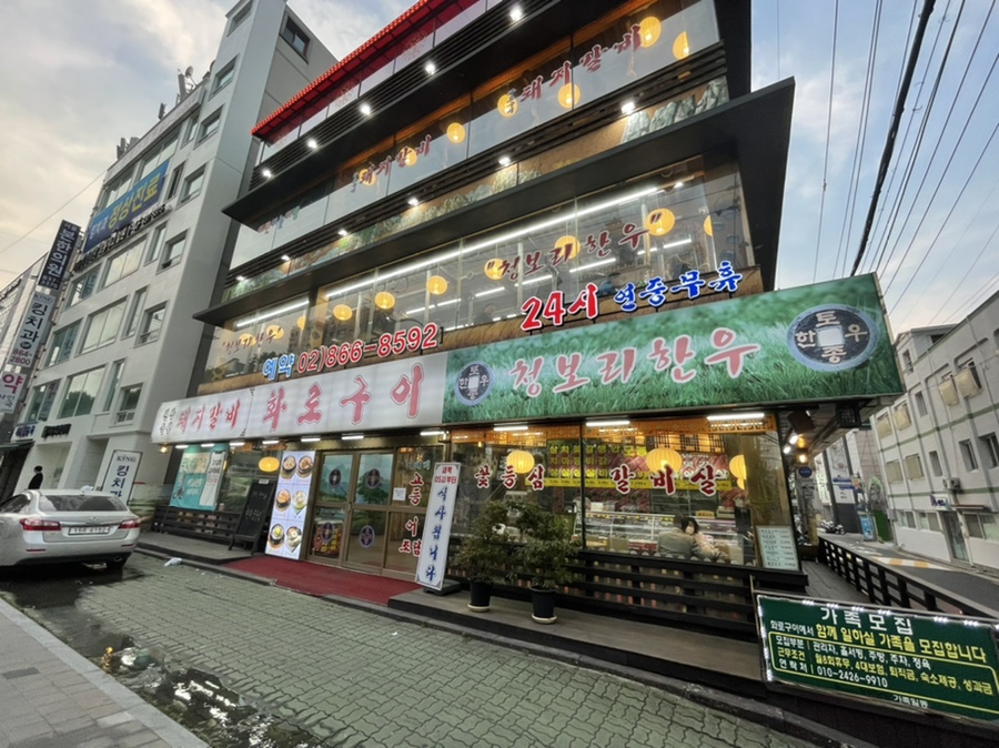 멀리 안나가고 동네에 사는 지인들과 먹으러 간 난곡 시거리에 있는 청보리한우라는 고기집입니다.