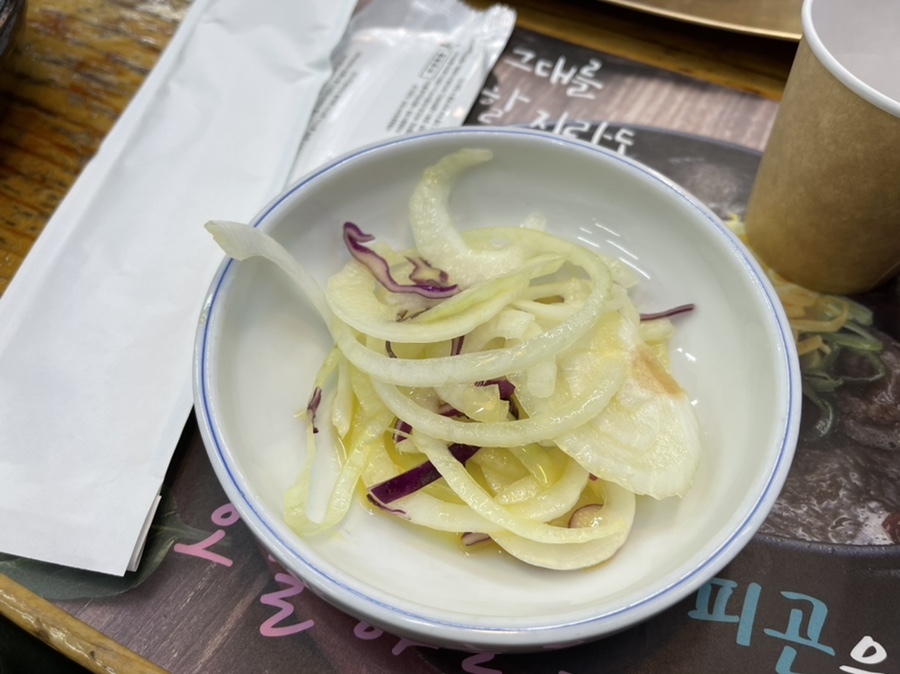 김치랑 동치미, 쌈채소, 양파 사진으로 찍지는 않았지만 쌈장도 나옵니다.