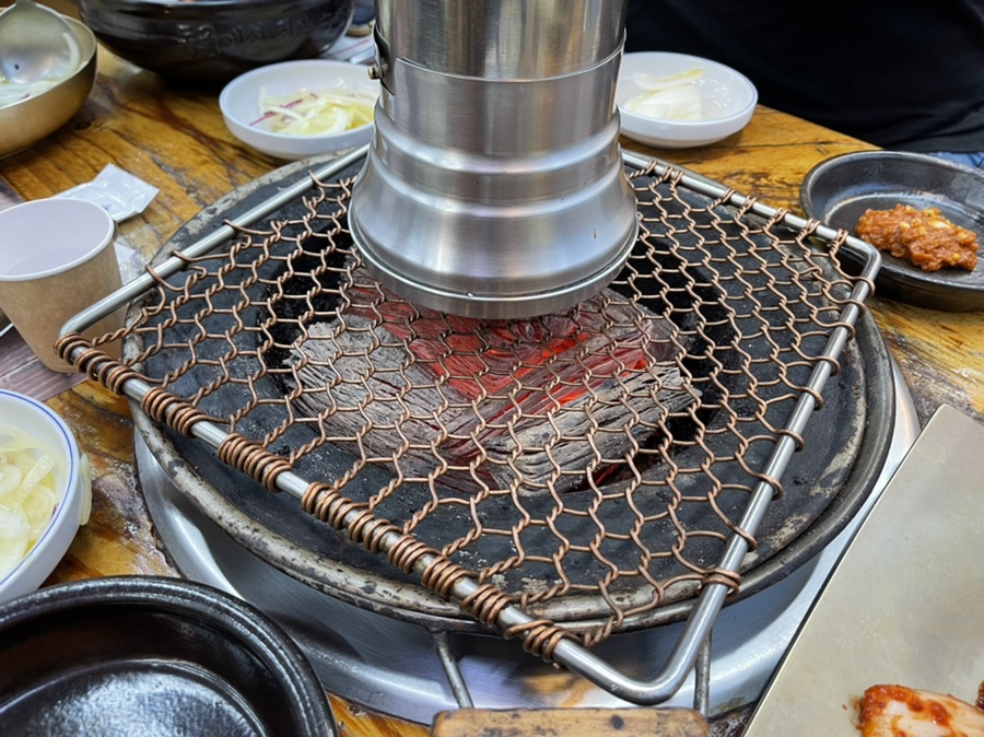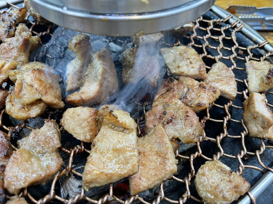 숯불화로에 구워먹는 돼지갈비가 주 메뉴인 청보리한우.