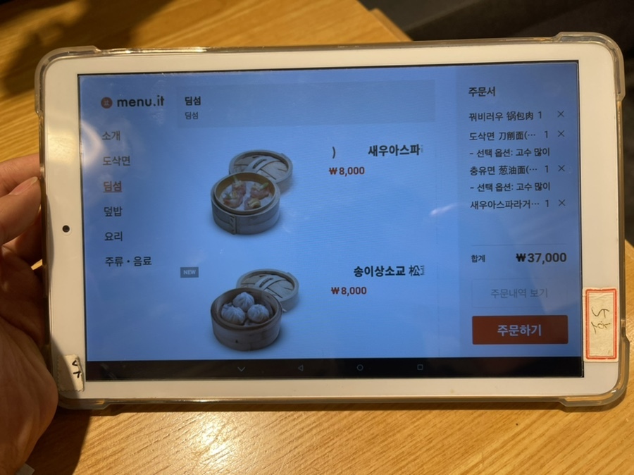 송화산시도삭면에서 주문은 각 테이블에 있는 아이패드로 하면 되는데 키오스크 주문은 많이보았지만 아이패드는 처음이네요.