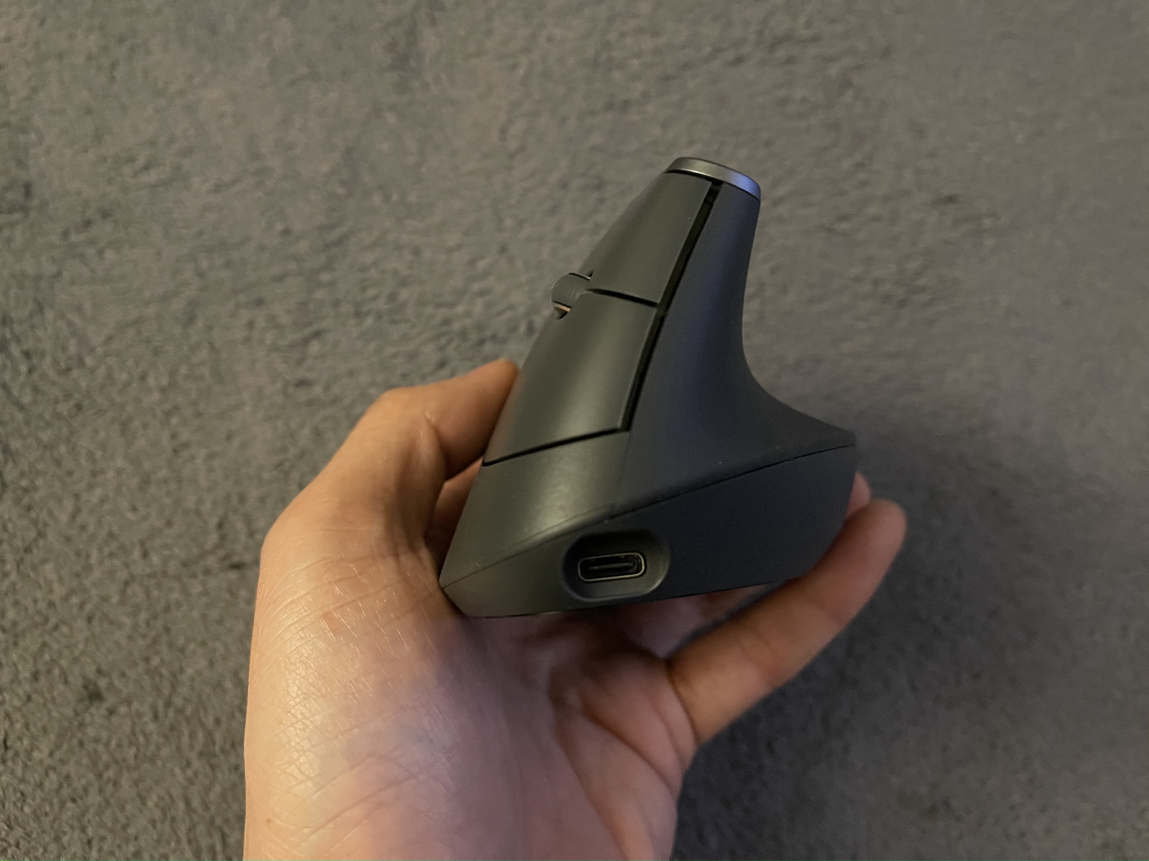 로지텍 버티컬 마우스 MX VERTICAL의 후면입니다.