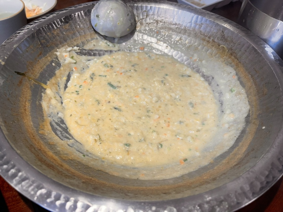 칼국수를 먹은 다음 이제 죽을 먹을 차례입니다.
