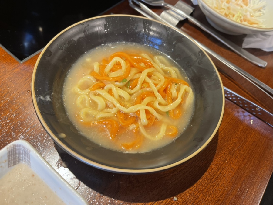 야채와 고기, 칼국수, 그리고 죽까지 배부르게 먹었습니다.