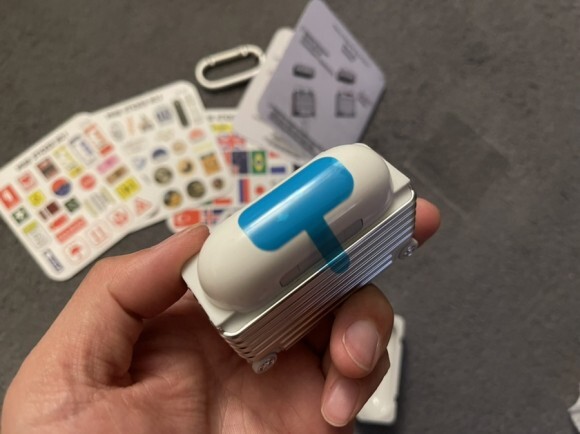 이제 스티커를 붙인 에어팟 프로 케이스를 보시죠.
